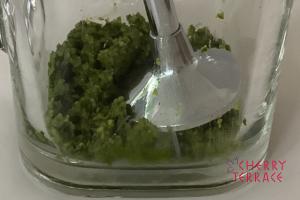 - 青柚子の皮をバーミックス(グラインダー)でつぶし混ぜる。