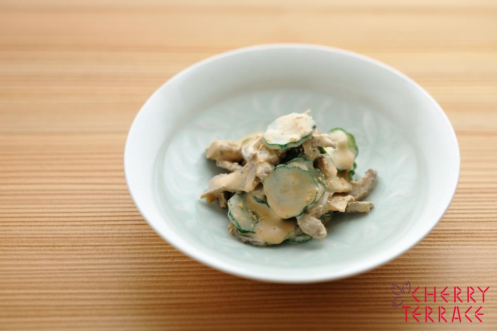 きゅうりとしいたけのごま和え