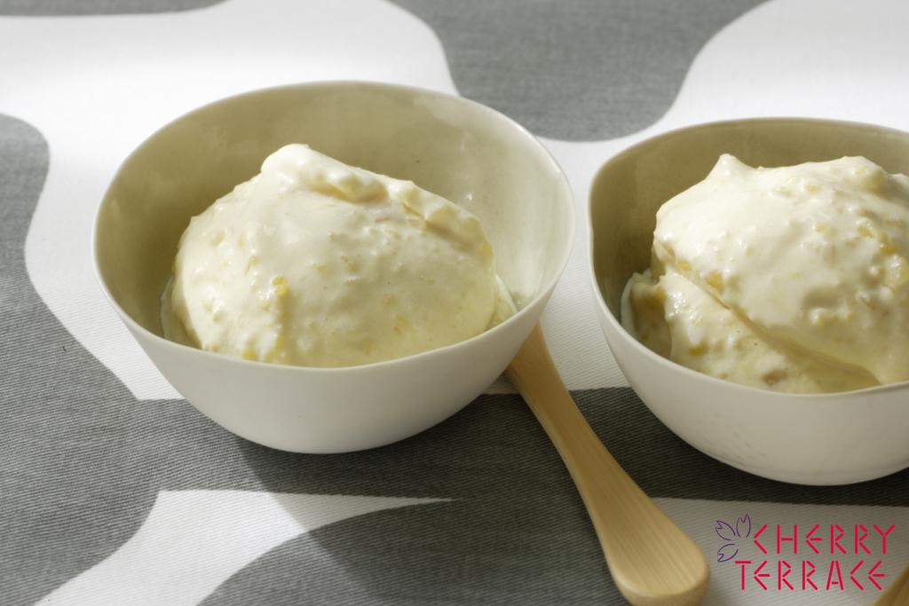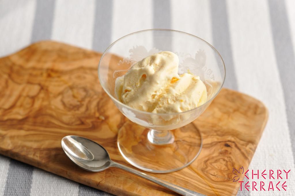 【黄桃アイスクリーム】 缶詰の黄桃を凍らせて、生クリームと一緒にバーミック... -