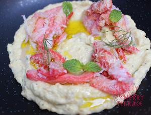 【ひよこ豆のフムスとズワイ蟹】 蟹をのせておもてなしの一品に。豆乳で伸ばし...
