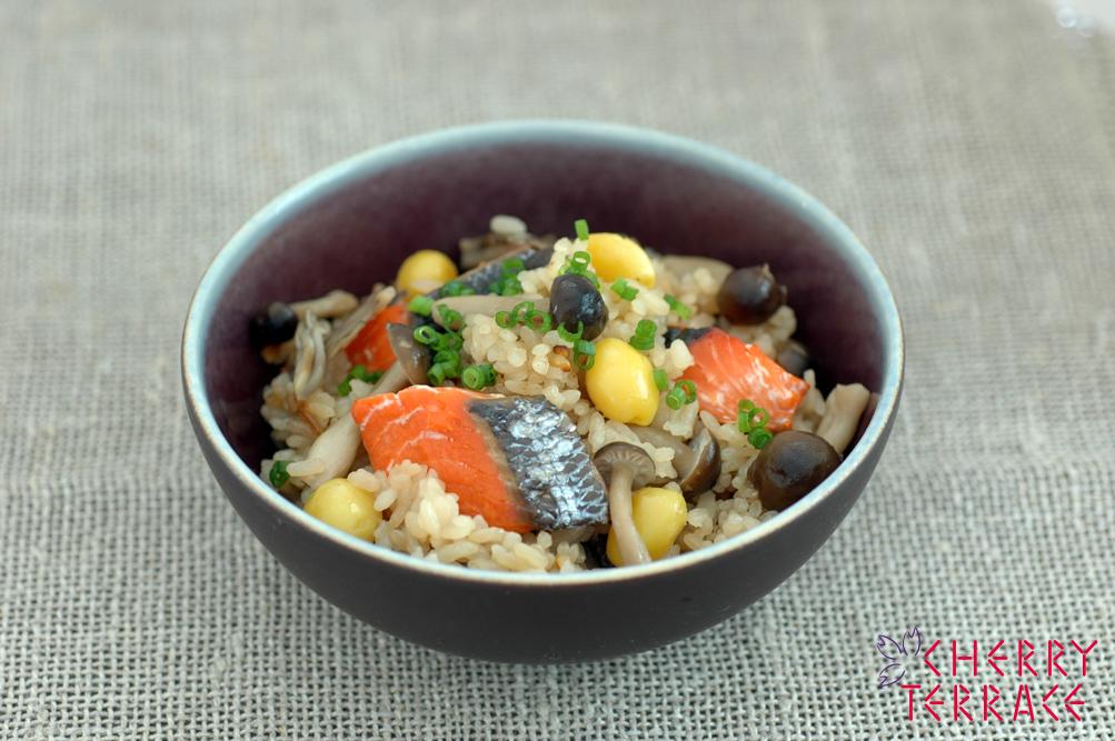 【鮭ときのこの炊き込みごはん】 秋の味覚たっぷりの炊き込みごはん。炊飯が得... -