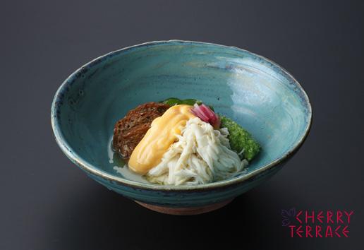 渡り蟹と胡瓜と大徳寺麩の黄身酢かけ