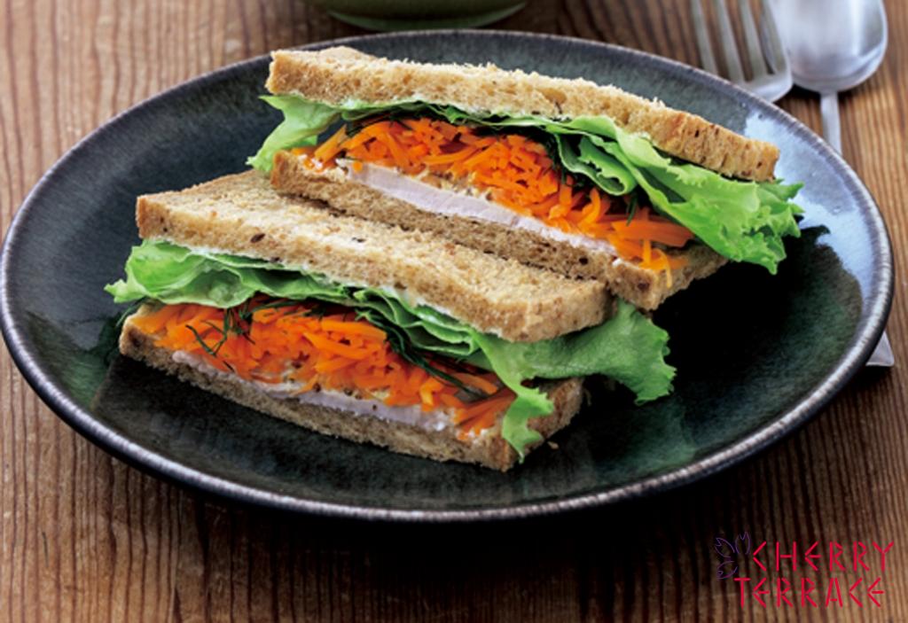 【豚肉とにんじんのサンドイッチ】 「ゆで豚肉」や「蒸しにんじん」のストック... -