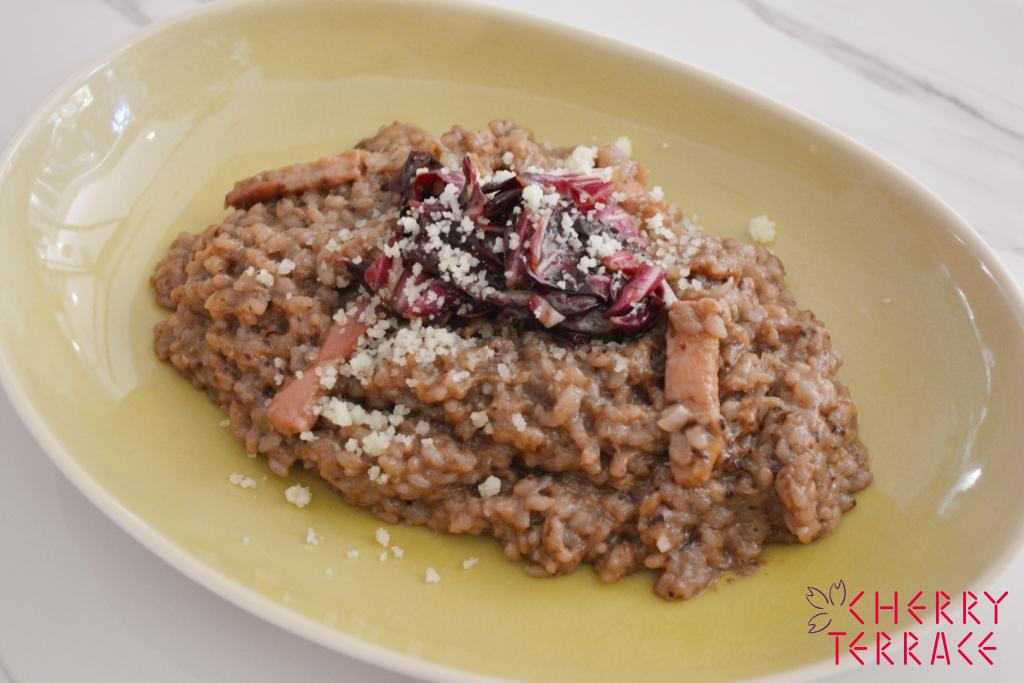 【トレビスリゾット】 トレビスを1個丸ごといただくリゾット。トレビスの紫色... -