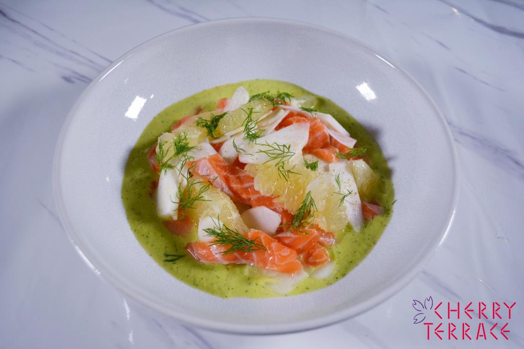 サーモンのマリネ きゅうりとディルのソース