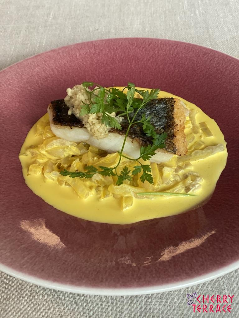 鱈のムニエル 白菜のサフランクリーム煮添え