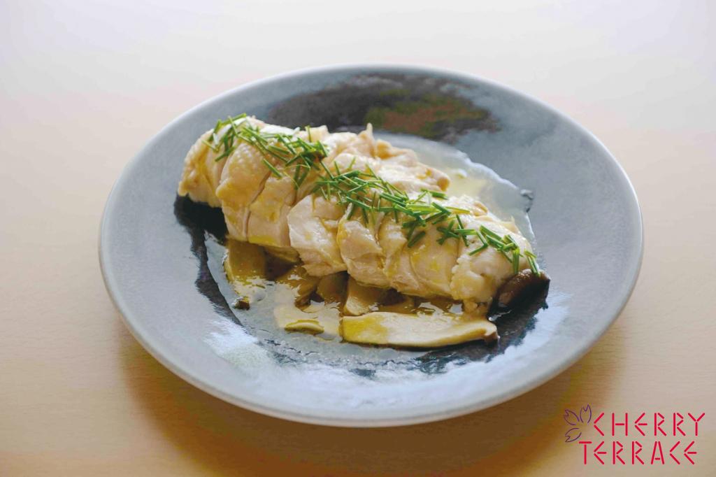 【鶏むね肉の蒸し煮】 日本酒で蒸した鶏にオリーブオイルをたっぷりかけていた... -