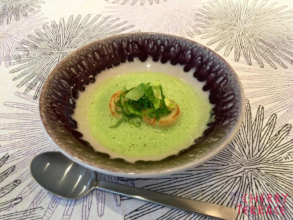 【帆立貝のソテーとサラダ菜のスープ ナツメグ】 「レストランRyuzu」飯塚... -