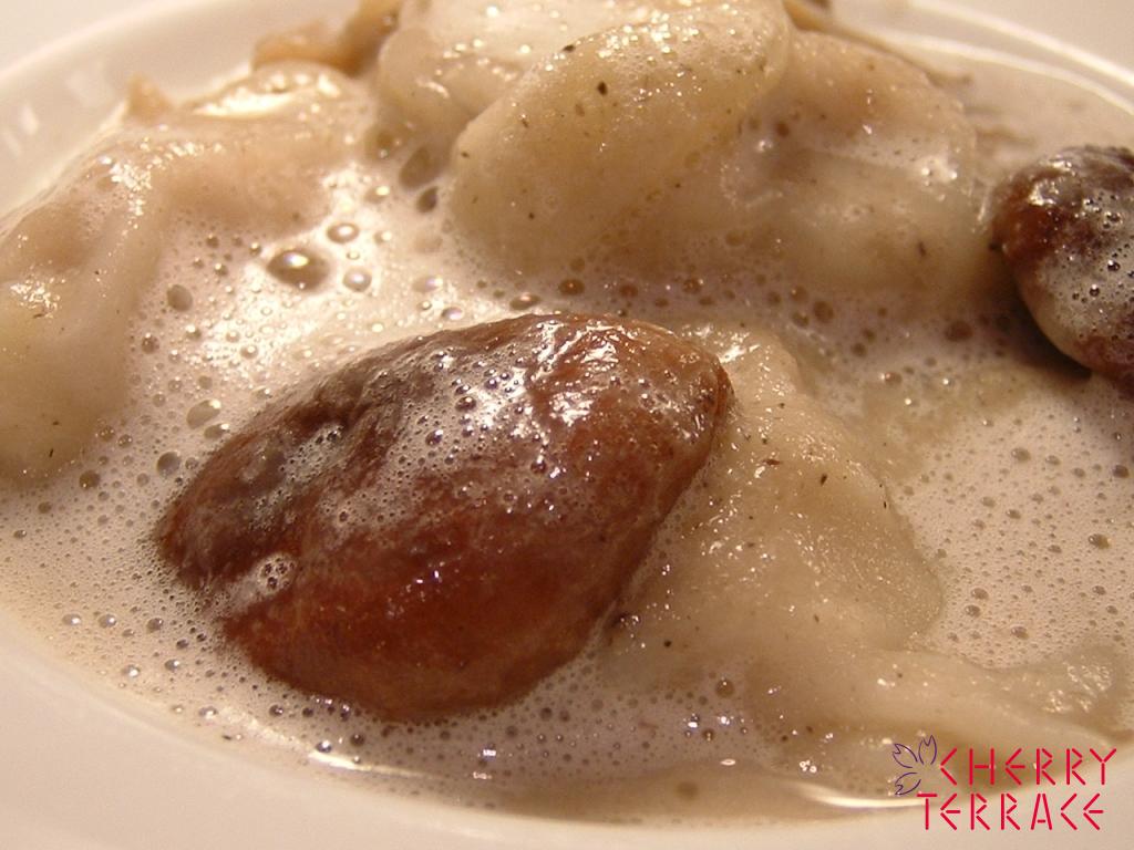 フレッシュポルチーのソテー 香り良いクレームドシャンピニオン