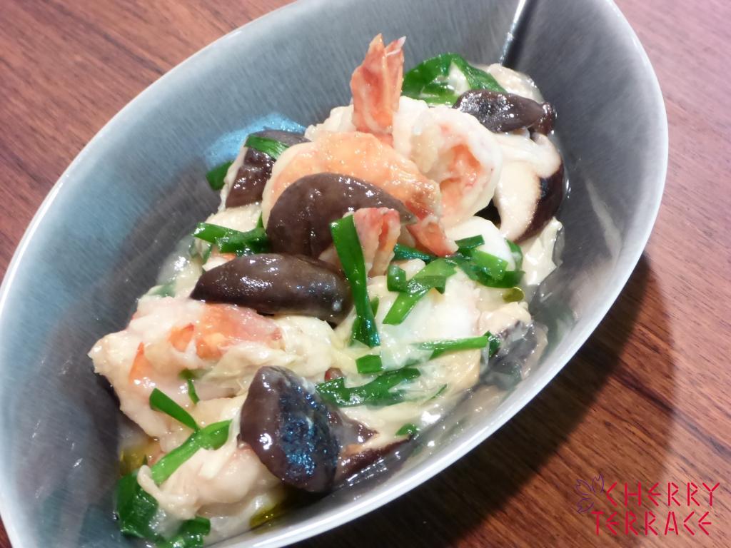 海老、湯葉、にらの煮もの