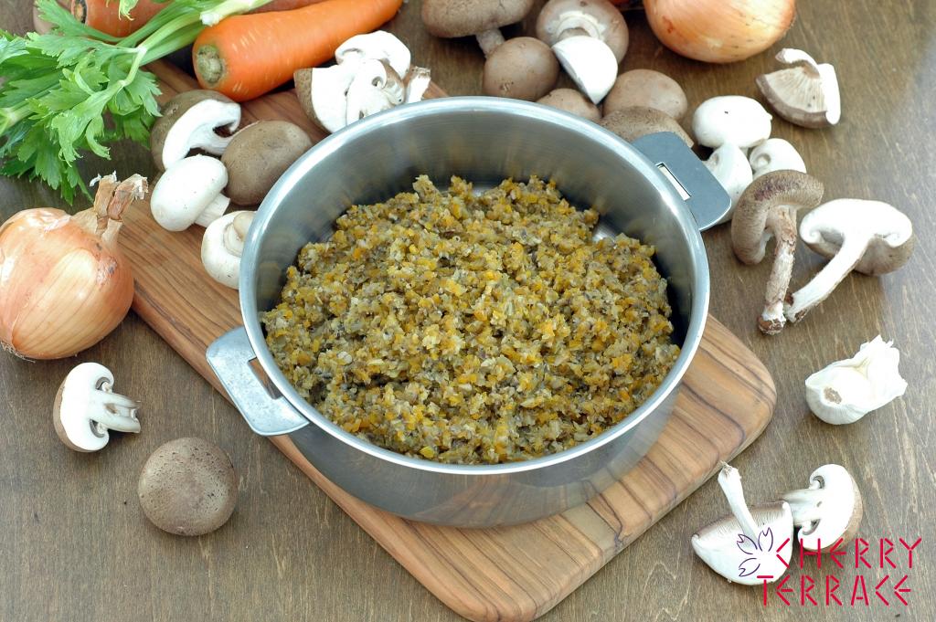 【きのこのソフリット】 たっぷりきのこのみじん切りはスライシーにおまかせ。... -