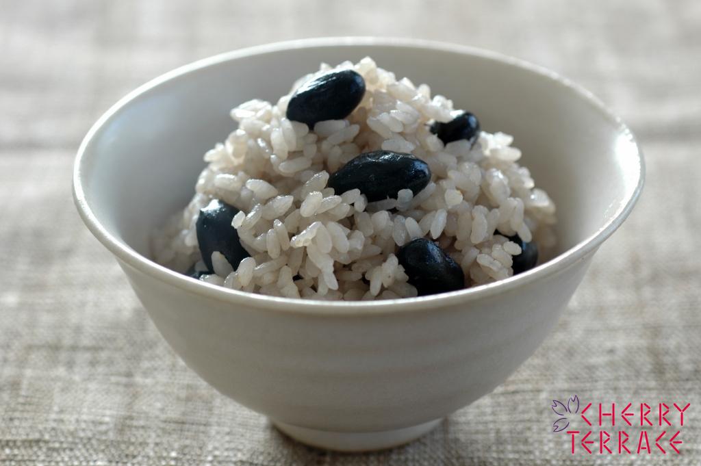 【黒豆ごはん】 黒豆の甘煮を使ったおこわ風ごはん。甘く煮た黒豆と煮汁を使い... -