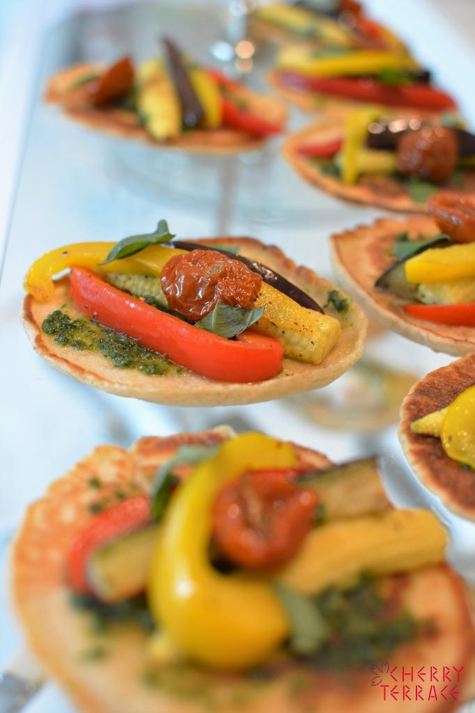 【ジェノベーゼと野菜のソテーのブリニ】 色鮮やかで、見た目も綺麗なブリニで...