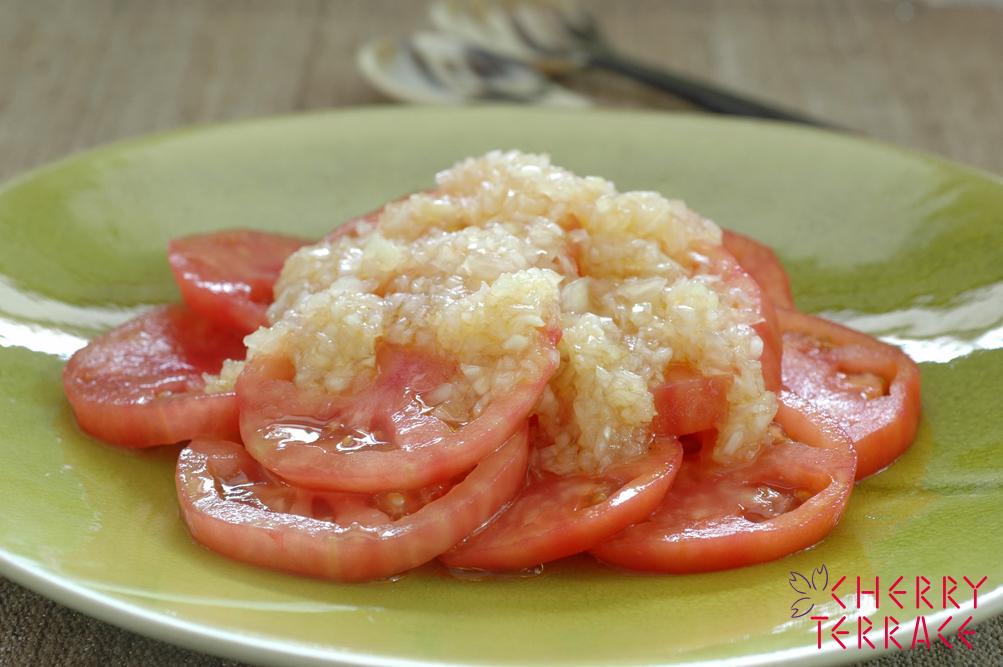【トマトサラダ】 ラウデミオとビアンコを1:1で合わせてドレッシングに。さわ... -