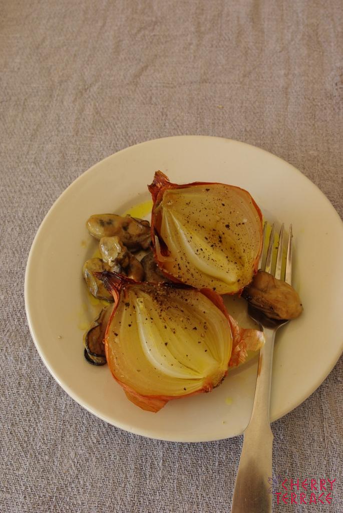 【玉ねぎのローストとかきのオイル煮】 じっくり焼いた玉ねぎの、甘い香りが何... -