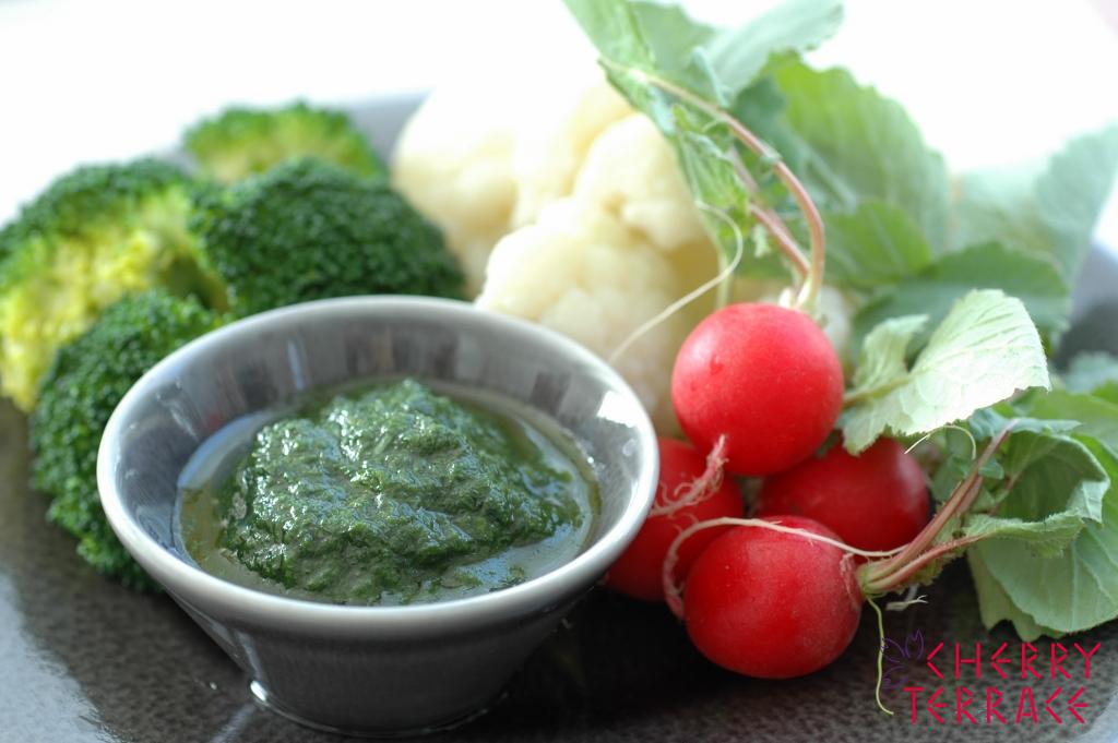 【春菊のグリーンソース】 春菊で作る万能グリーンソース。旬の新鮮な春菊とラ... -