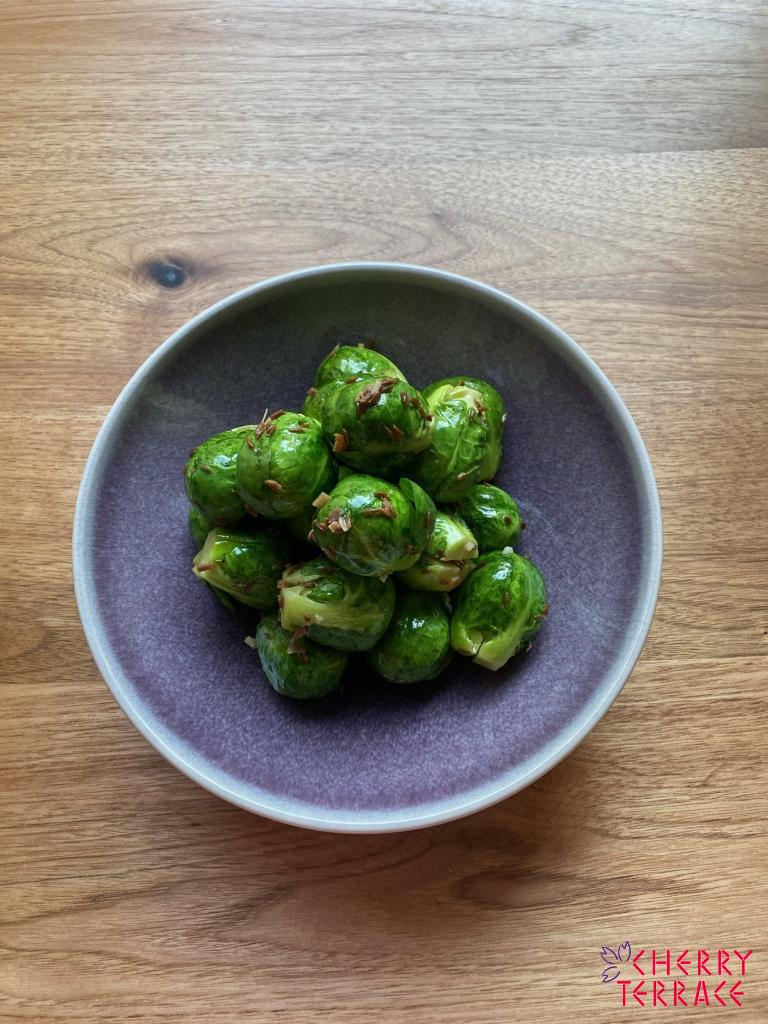 【芽キャベツの蒸し煮 クミン風味】 キャベツの変種の芽キャベツ。免疫力を高... -