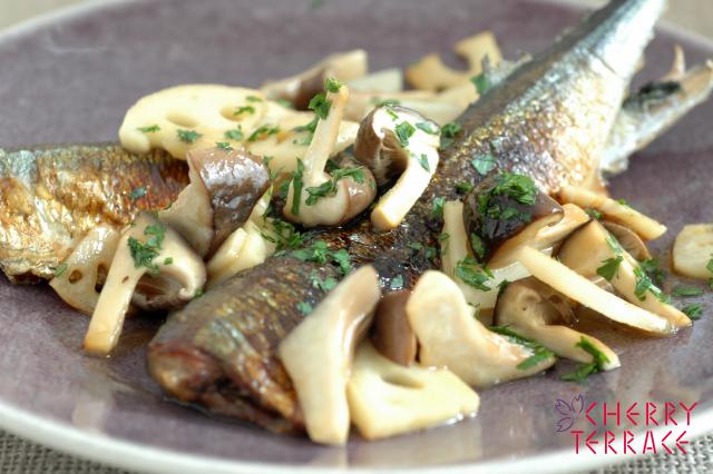 【さんまのソテー れんこんときのこのバルサミコソース】 旬のさんまを使った...