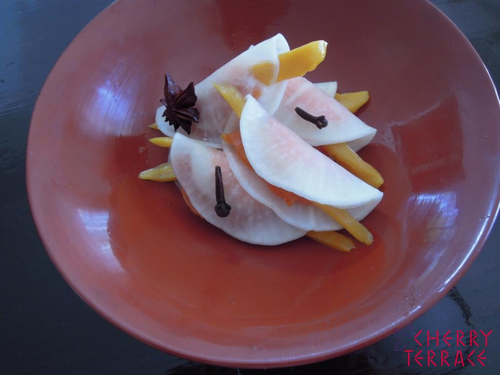 【なますの花びら餅仕立て】 大根、にんじん、かぶとドライフルーツの花びら餅... -