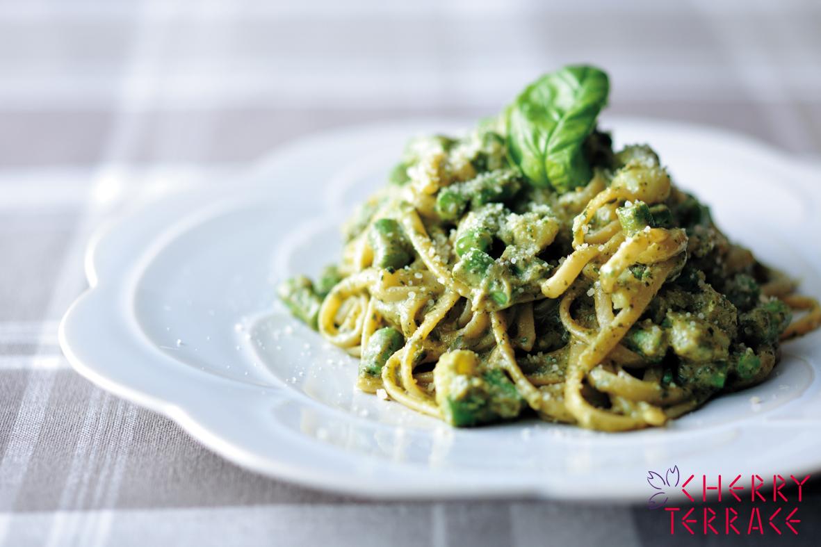 - 1が冷えたらバジル、大葉、パセリ、ラウデミオ1/4カップを加えて、さらにペースト状に撹拌し、塩、黒こしょうで味を調え、ボウルに移す。