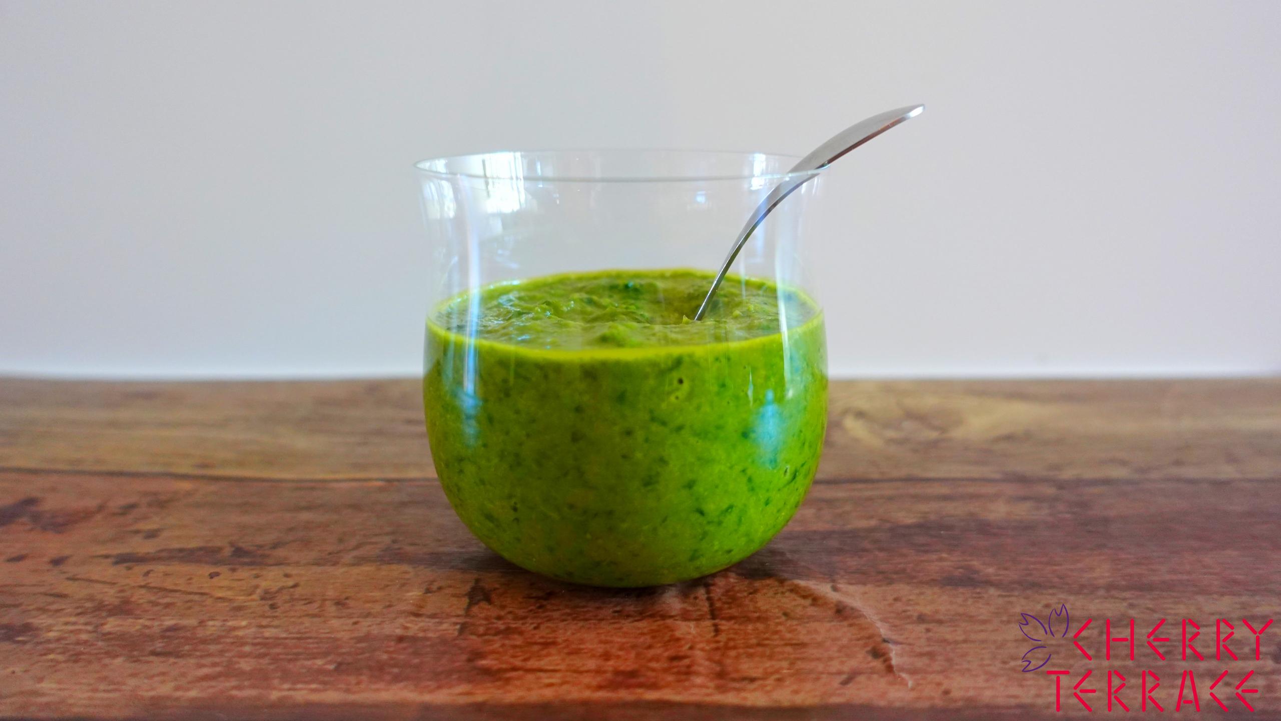 - 容器に全ての材料を入れて、バーミックス(ミンサー)で滑らかにつぶし混ぜる。