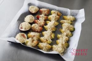 - 最後に、ラウデミオを少しずつたらすようにかけてオーブンへ。
