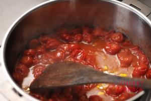- 水分が出てきたら木べらなどで軽くつぶし混ぜて火を止める。