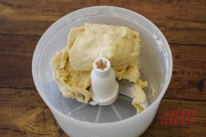 - 全ての材料を順に入れ、バーミックス(スライシー/チョッピングナイフ)に入れ、ひとかたまりのなめらかな生地になるまで混ぜる。