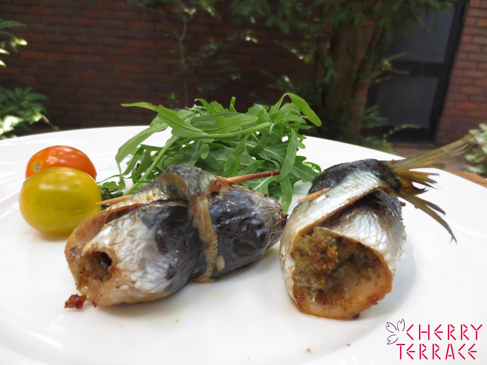 ベッカフィーコとはシチリア島に住む野鳥の名前。出来上がりがその姿に似ているのでそう名付けられたシチリア料理です。温かいものをメインディッシュとしても、冷めたものを前菜としても。レーズンやナッツを使うのは、アラブの影響です。様々な民族が行き交った歴史をもつシチリア島には面白い食材の組み合わせの料理があります。