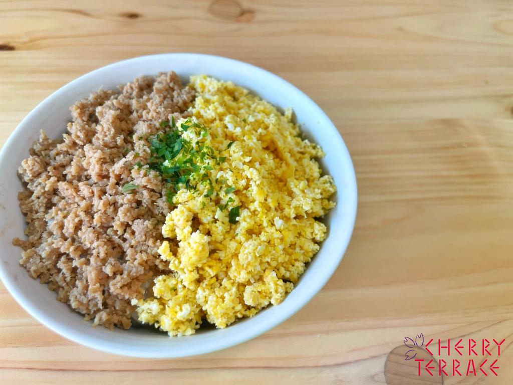 ひき肉と卵の2色そぼろ丼。