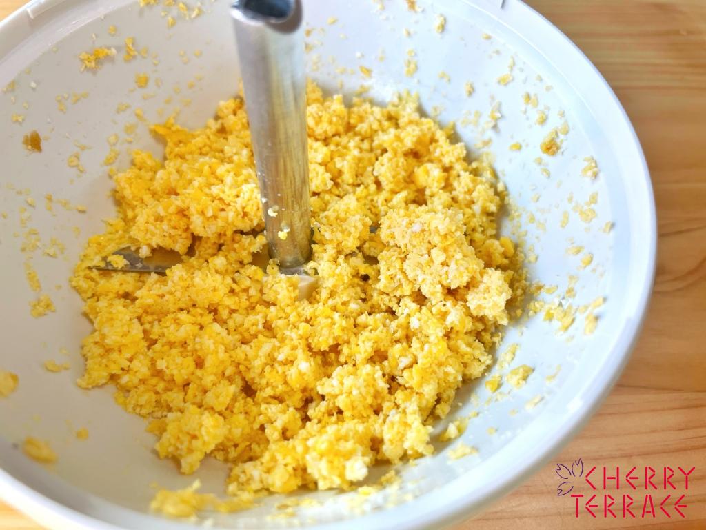 ひき肉も卵もきれいに細かくなります。