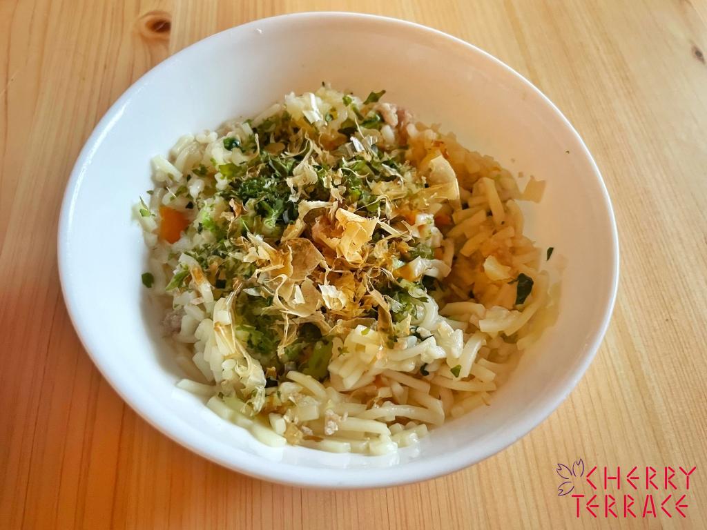 パスタ麺と同様、麺はスライシーで細かくしてすると簡単で便利です。