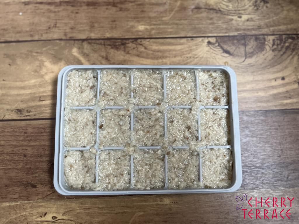 作り方は野菜ミックス同様、スライシーで細かくして5分ほど茹でて冷凍保存。
