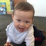 赤ちゃんがママの手作りの離乳食を食べてにっこり!