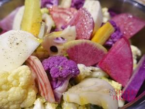 - 野菜を入れ、塩、こしょうしてたっぷりのラウデミオを上からまわしかける。