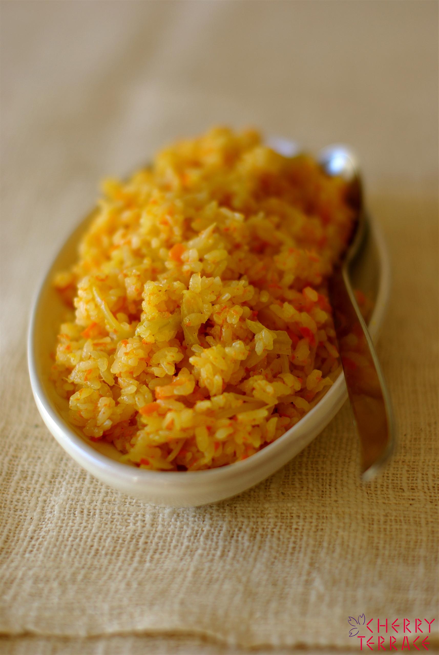 数種のスパイスを混ぜて炊くにんじんご飯。意外に手間のかかるにんじんのみじん切りには、バーミックスがおすすめ。たっぷりのにんじんに、スパイス、オイルを少々加えた炊き込みご飯です。