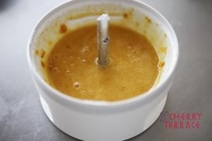 - マーマレードと酢、ナムプラー、塩をバーミックス(グラインダー)に入れ、何度か蓋を開けて様子を見ながら大きな塊が残らないようにしてピュレ状にする。それを容器に移し、味を見て足りなければ塩や酢で調える。