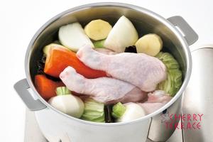 - クリステル深鍋22cmに材料をすべて入れ、中火にかける。