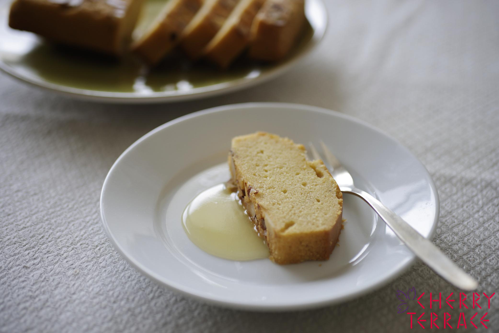 イタリアにとうもろこしの粉を使ったポレンタのケーキがありますが、それを蜂蜜とラウデミオで風味を強調したケーキ。材料を丁寧に混ぜていき、あまり気泡を作らない密な生地にするのがコツ。材料を増やして生地を多めに作る場合は、バーミックスを使って卵液がしっかり混ざるようにします。