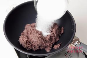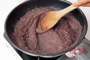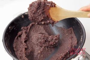 バーミックスでつぶさず、そのまま中華鍋に移し、こしあんと同様に練って出来上がり。