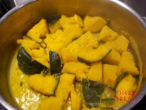 - お皿に②を盛りつけたら③のかぼちゃを乗せる。