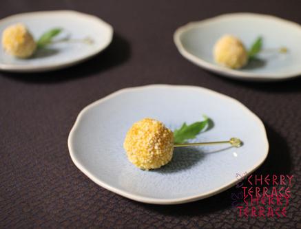 秋の味覚銀杏を口当たりよいイカの風味で閉じ込めました。アミューズ・ブッシュとしても最適。