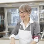• クリステル深鍋で炊いたごはん400gにしそふりかけ5gを加えてへらで混ぜ、オーブンペーパー(30×50cm)に取り出し、ペーパーをかぶせ上からよく揉んで、半餅状にする。そのまま棒状に形を整え10等分にして丸める。