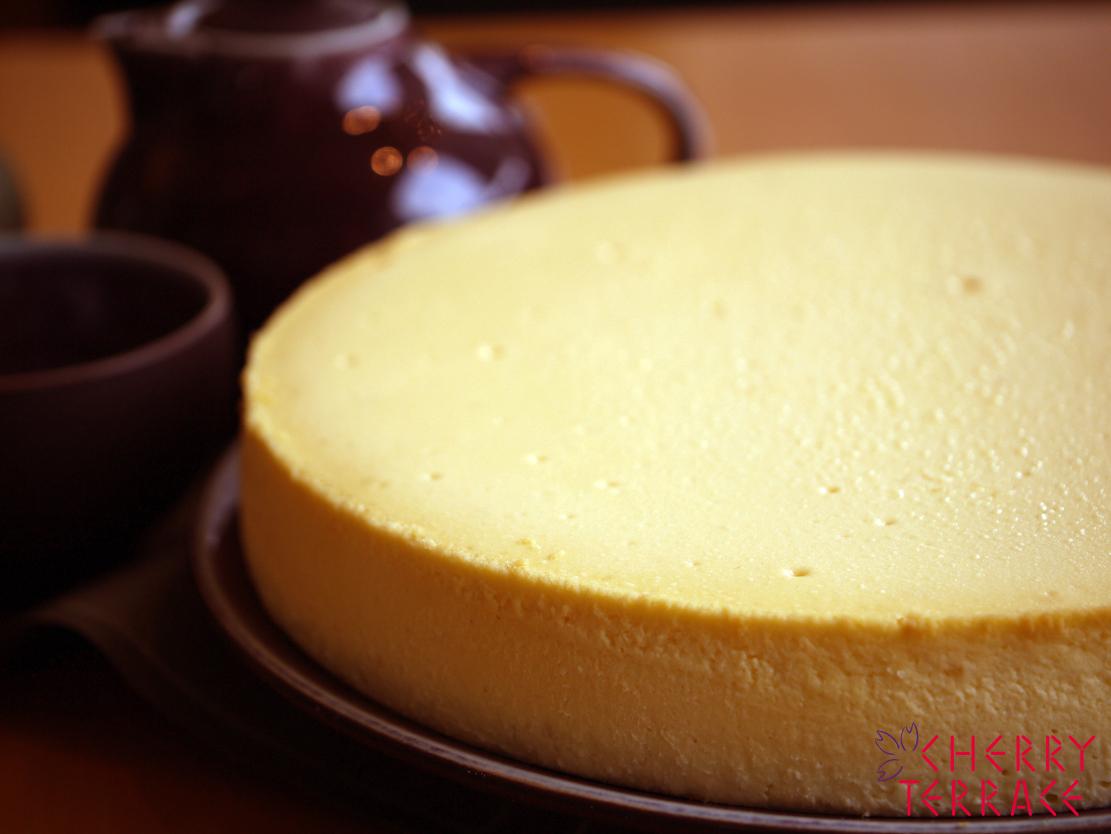 - 丸型に生地を流し込み、150℃に温めておいたオーブンで25〜30分ほど焼く。中心部がゆらゆら揺れる程度で焼き上がり。そのままオーブンの中で20分ほど蒸らす。
