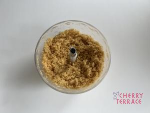 - アーモンドは熱湯で2〜3分茹で、冷水にとり、皮をむきバーミックス(スーパーグラインダー)で砕く。