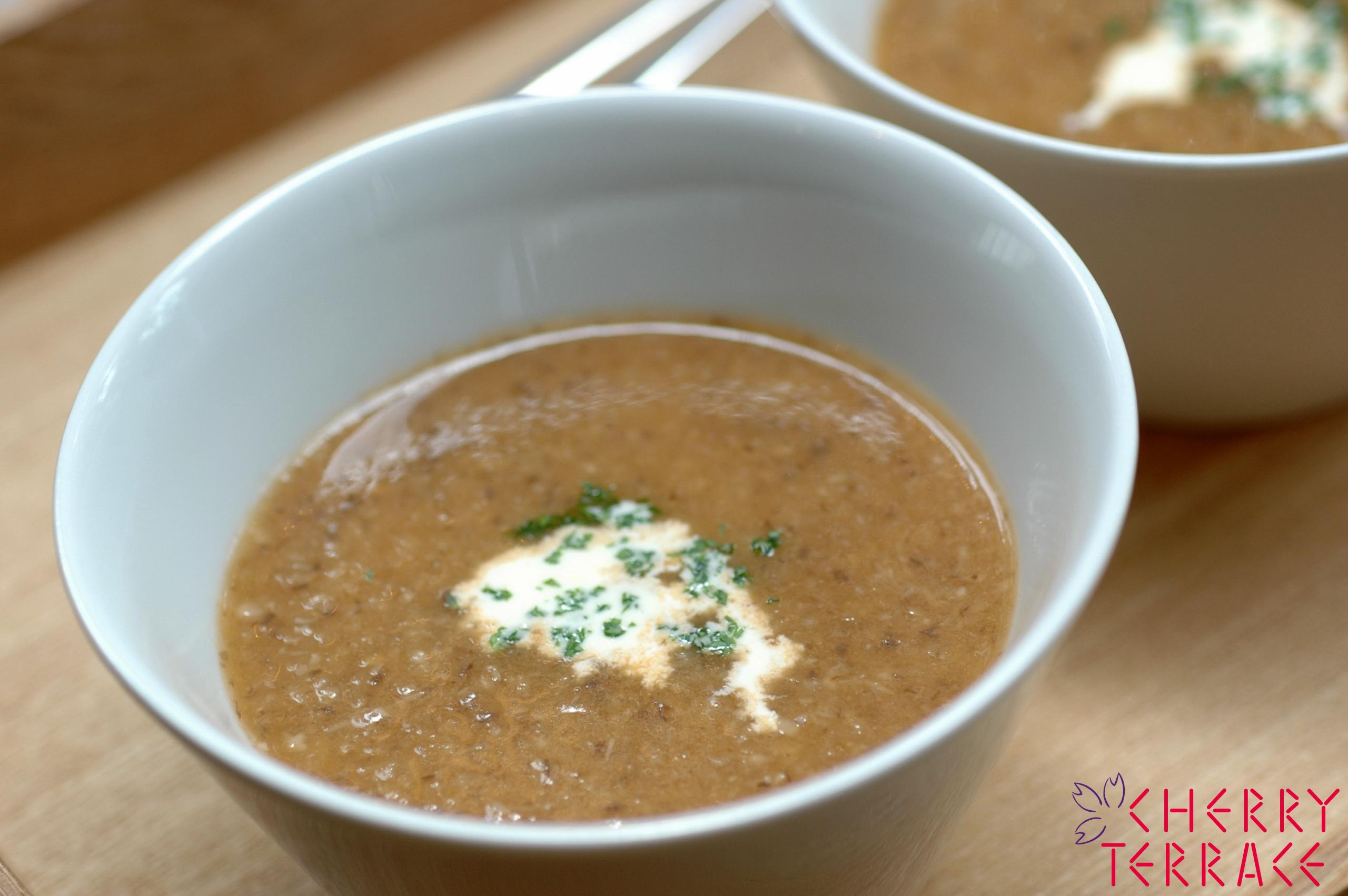- 火を止めてバーミックス(ミンサー)で4のスープをなめらかにつぶし混ぜる。