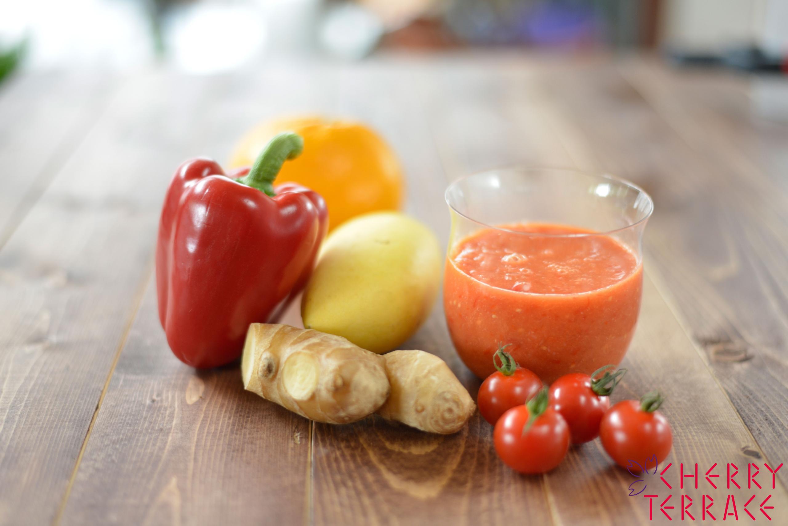 ミニトマト、甘夏、マンゴー、パプリカ、しょうがのスムージー