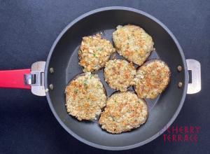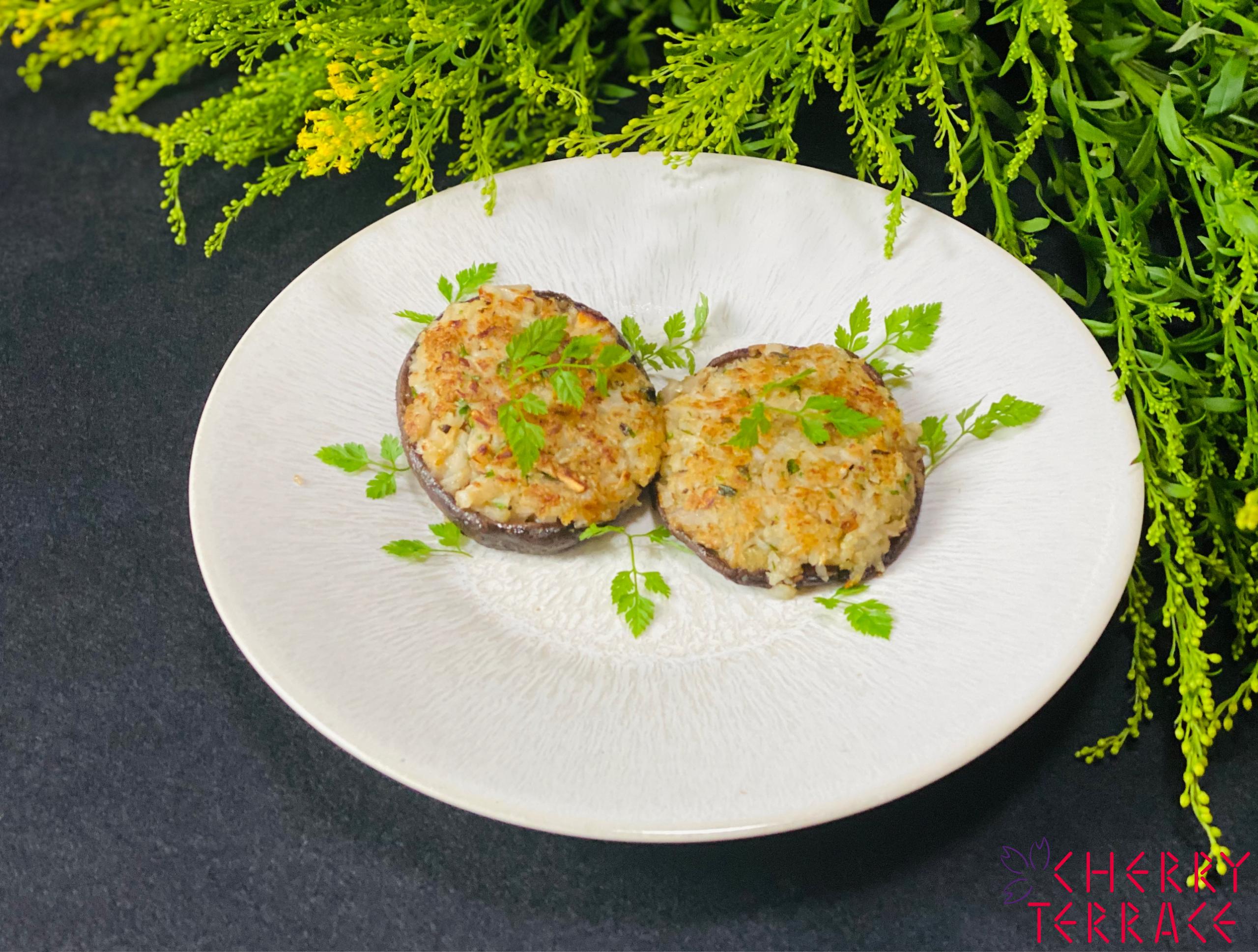 しいたけを裏返したら、フライ返しで椎茸を押して、れんこんの詰め物に美味しいだし汁を吸わせてください。れんこんはこんがりと香ばしくカリッと焼いた方が美味しいですよ。