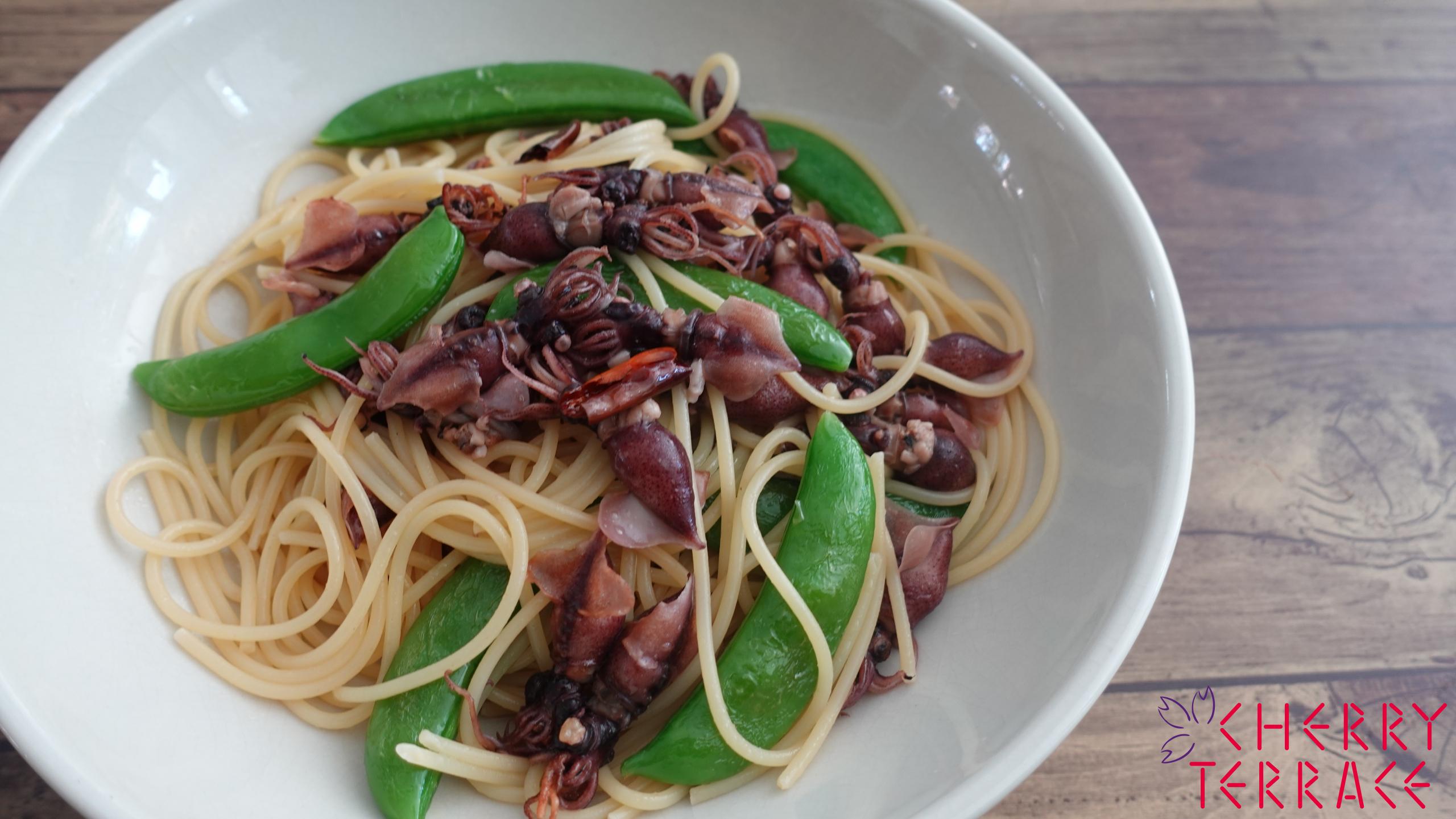 シンプルな味付けでほたるいかのおいしさを堪能できるパスタです。ほたるいかの旬の時期にぜひお試しください。スナップえんどうは、手近な緑の野菜に置き換えてもよいでしょう。