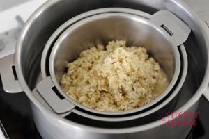 • 16cm、24cmの鍋にふたをして24cmの鍋ごとホットキルトに包み、12時間おく。甘い香りがしたら完成の目安です。